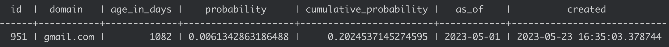 Below, we collected the cumulative probabilities for each time interval to build a curve that describes the distribution of email ages for a given monthβs sample by domain.